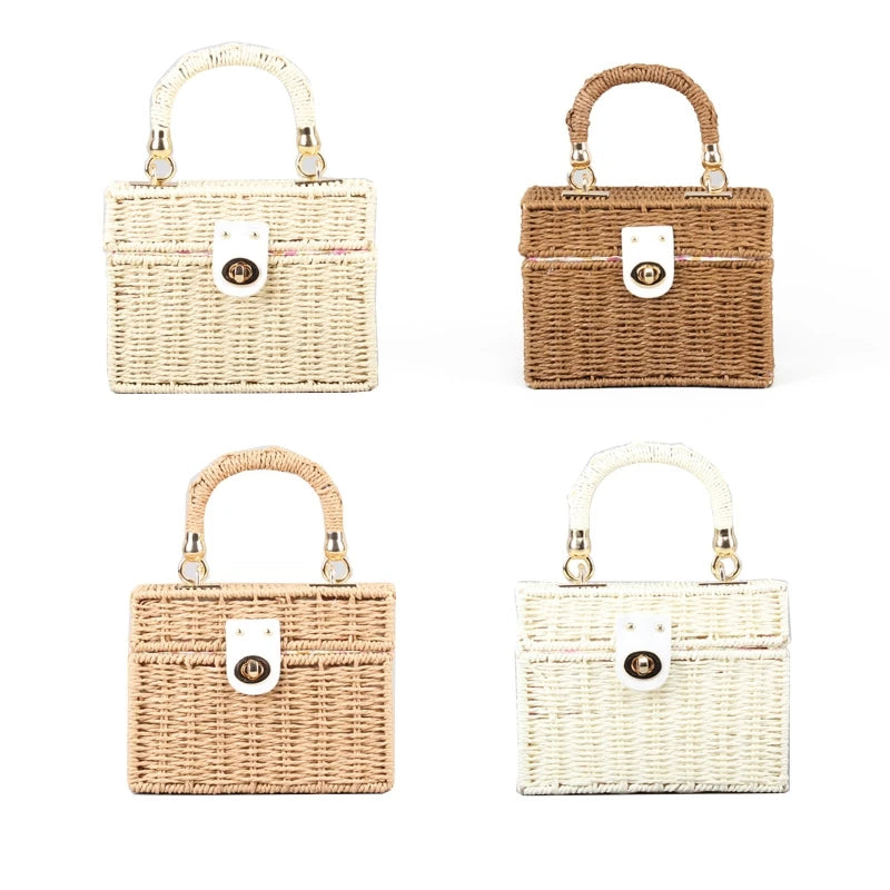 Description:This hand-woven messenger bag is perfect for summer nights. Made from straw weave, it exudes a retro vibe.Features: Hand-woven messenger bag for summer Made from straw weave for a retro look Ideal for summer night outings Can be worn as a shoulder bag or crossbody bag Features a top handle...