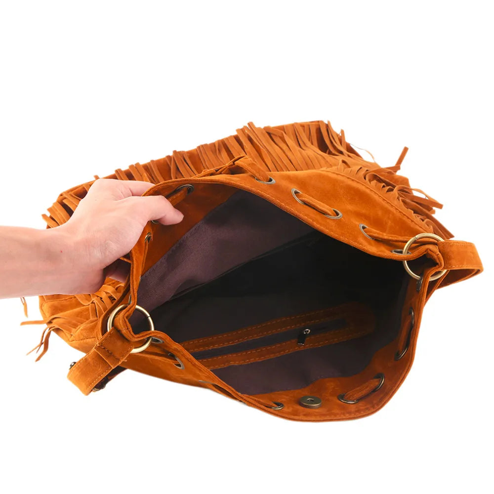 Stay fashionable with this tassel handbag drawstring bucket that offers both style and high capacity for your essentials.