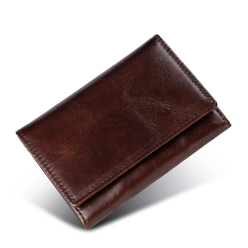 RFID Blocking Card Wallet Men Short Hasp Retro Oil Wax Leather Small Wallet