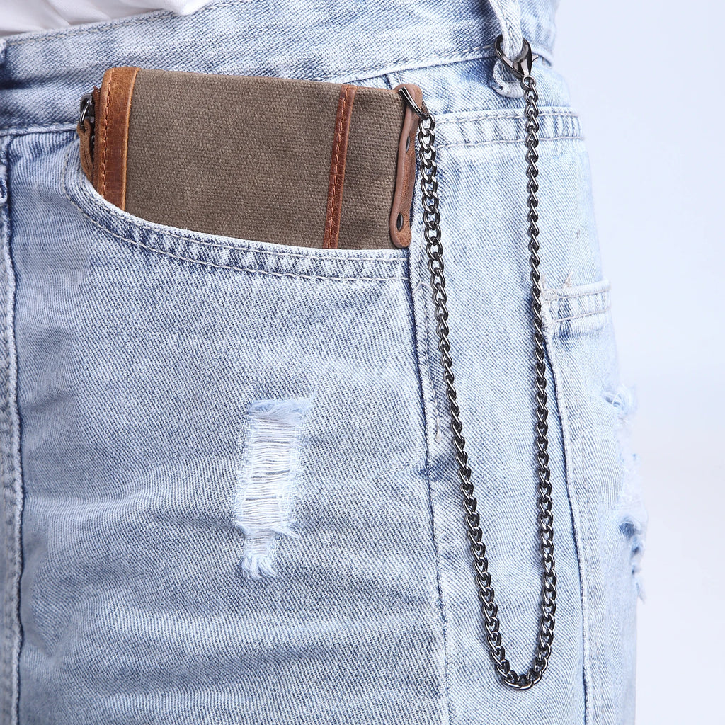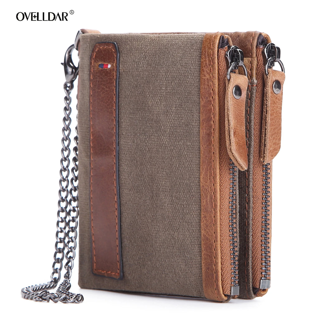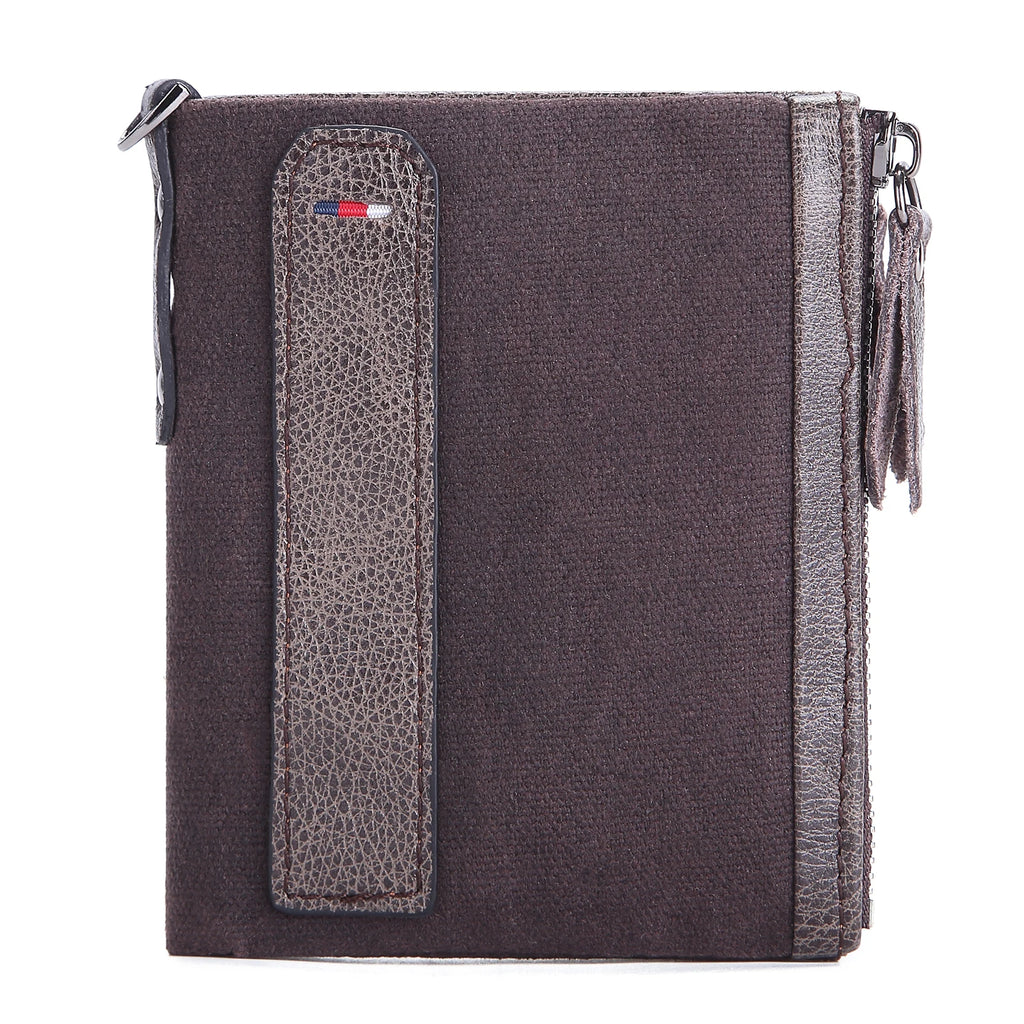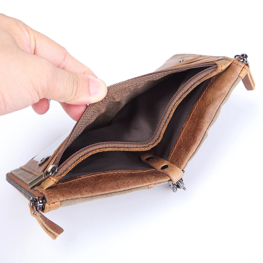 This cowhide leather men's wallet with RFID protection is perfect for everyday use. Made from high-quality wax canvas, it features a zipper closure for added security. The vintage design adds a touch of style to your ensemble.