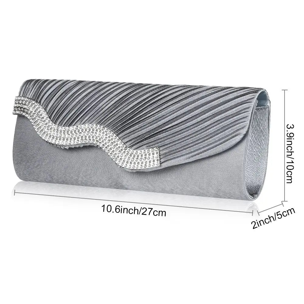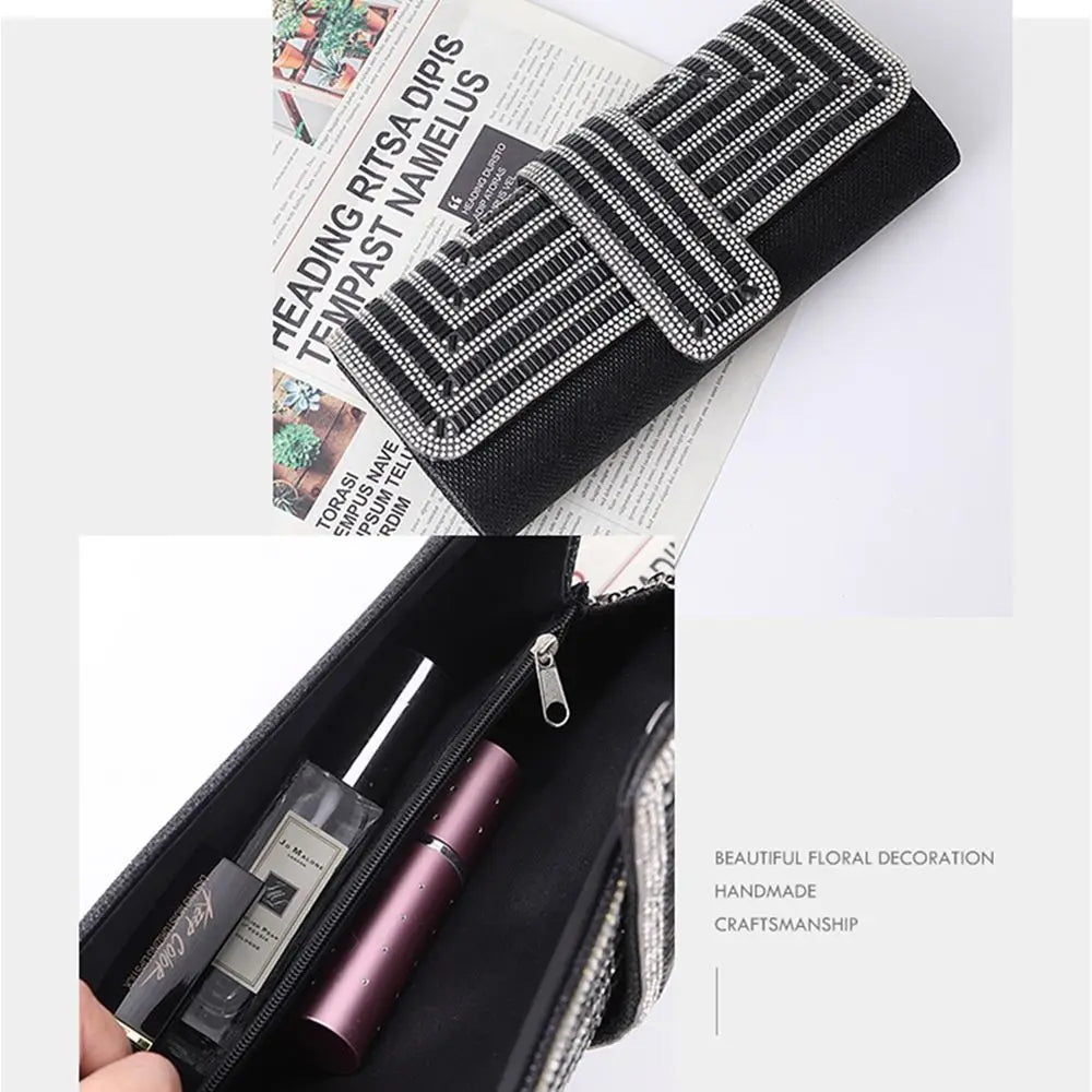 This clutch purse and handbag is elegantly designed with rhinestones, perfect for parties, weddings, or evening events. It can be worn as a shoulder bag or clutch.