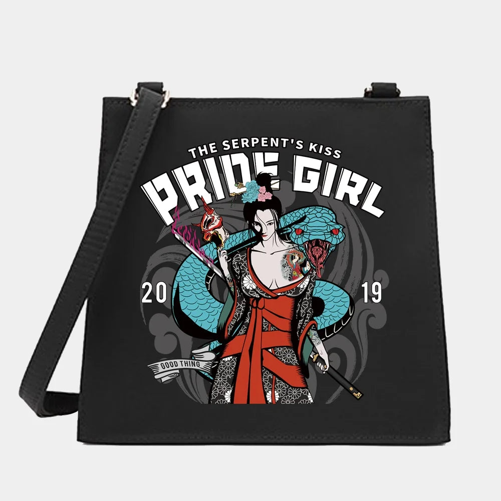 This stylish shoulder messenger bag features a unique Samurai Series pattern, perfect for daily commutes or outings.