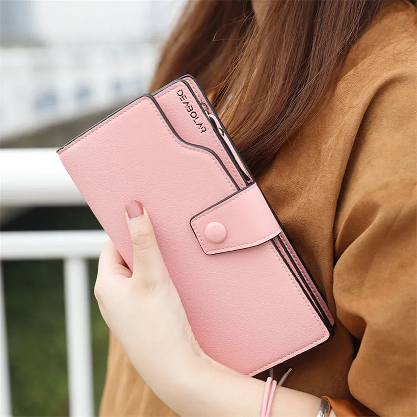 This stylish wallet is perfect for women on-the-go. Made of high-quality scrub leather, it features a long design with multiple compartments for cards, cash, and more. The perfect accessory for any outfit!