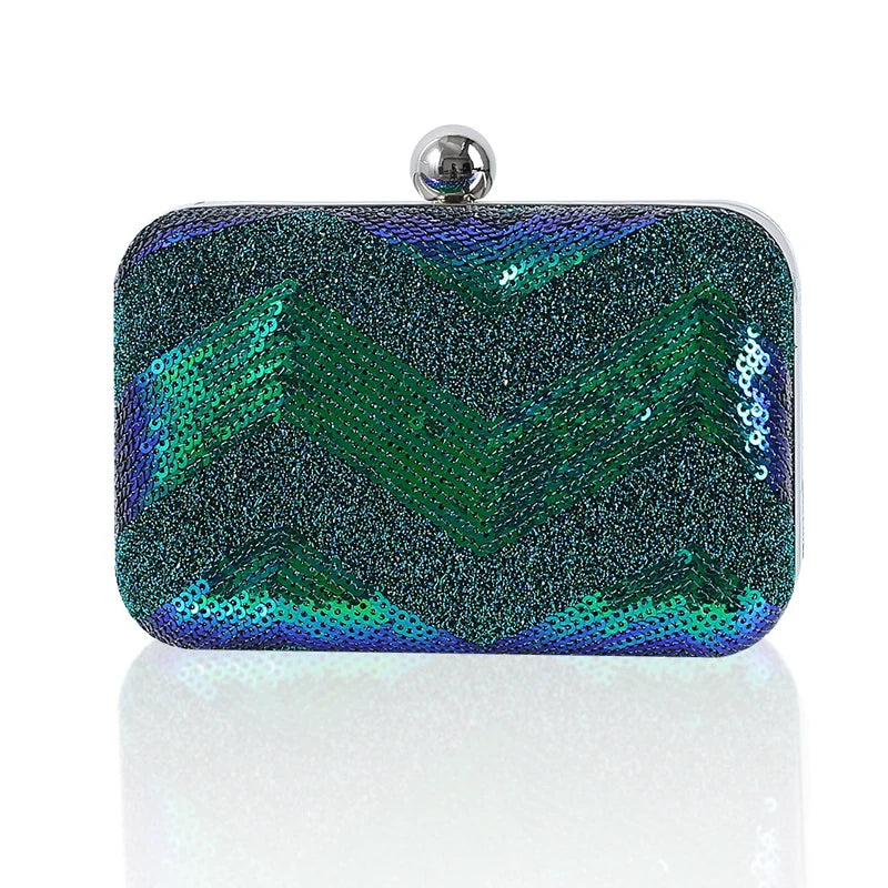 Add some sparkle to your outfit with this stylish green sequins handbag. It can be worn as a crossbody bag or a clutch, perfect for evenings out.