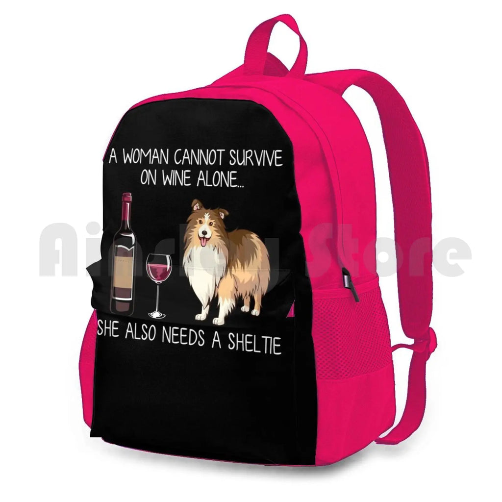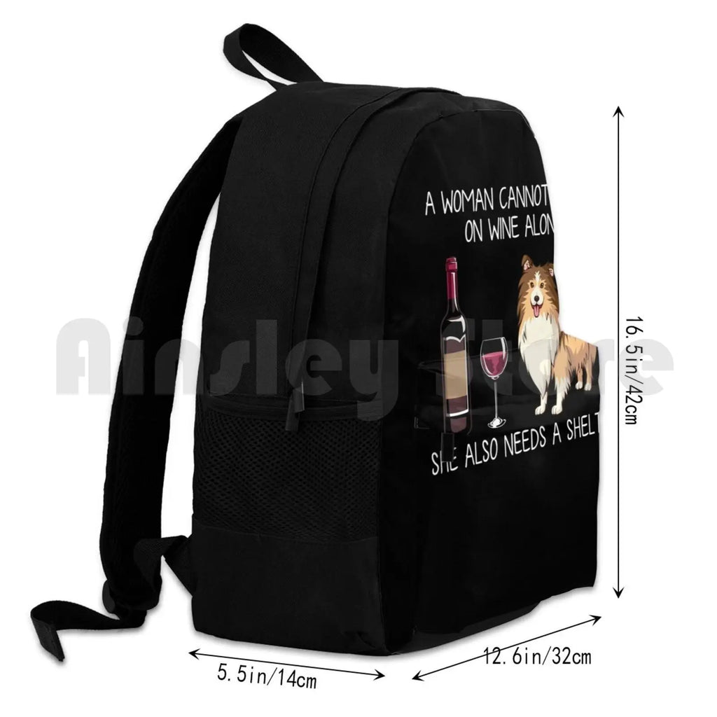 Show your love for Shelties with this hilarious hiking backpack featuring a Sheltie enjoying a glass of wine. Perfect for dog lovers!