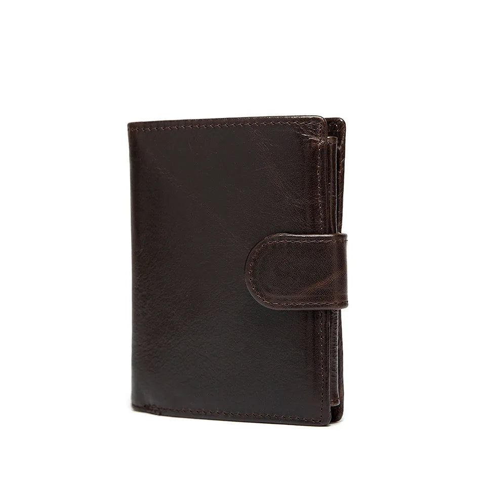 This leather wallet is crafted from first layer cowhide, featuring a retro and stylish design. It is perfect for those who value quality and functionality in a wallet.