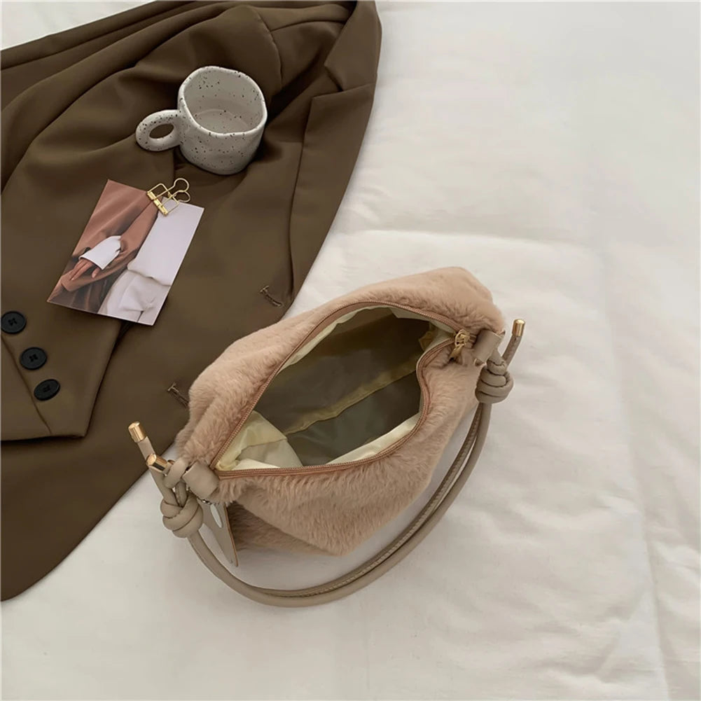 Shoulder Crossbody Bag for Women Plush Soft Underarm Bag Casual Ladies Handbags