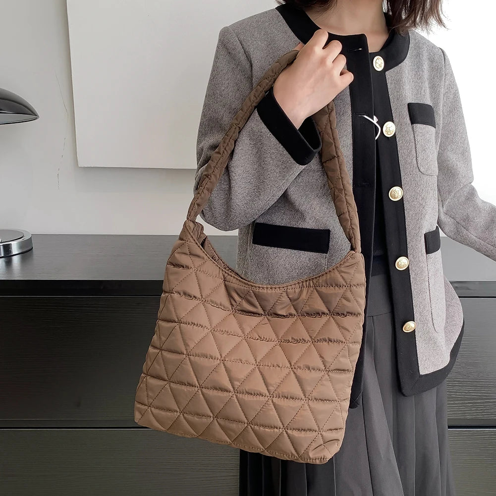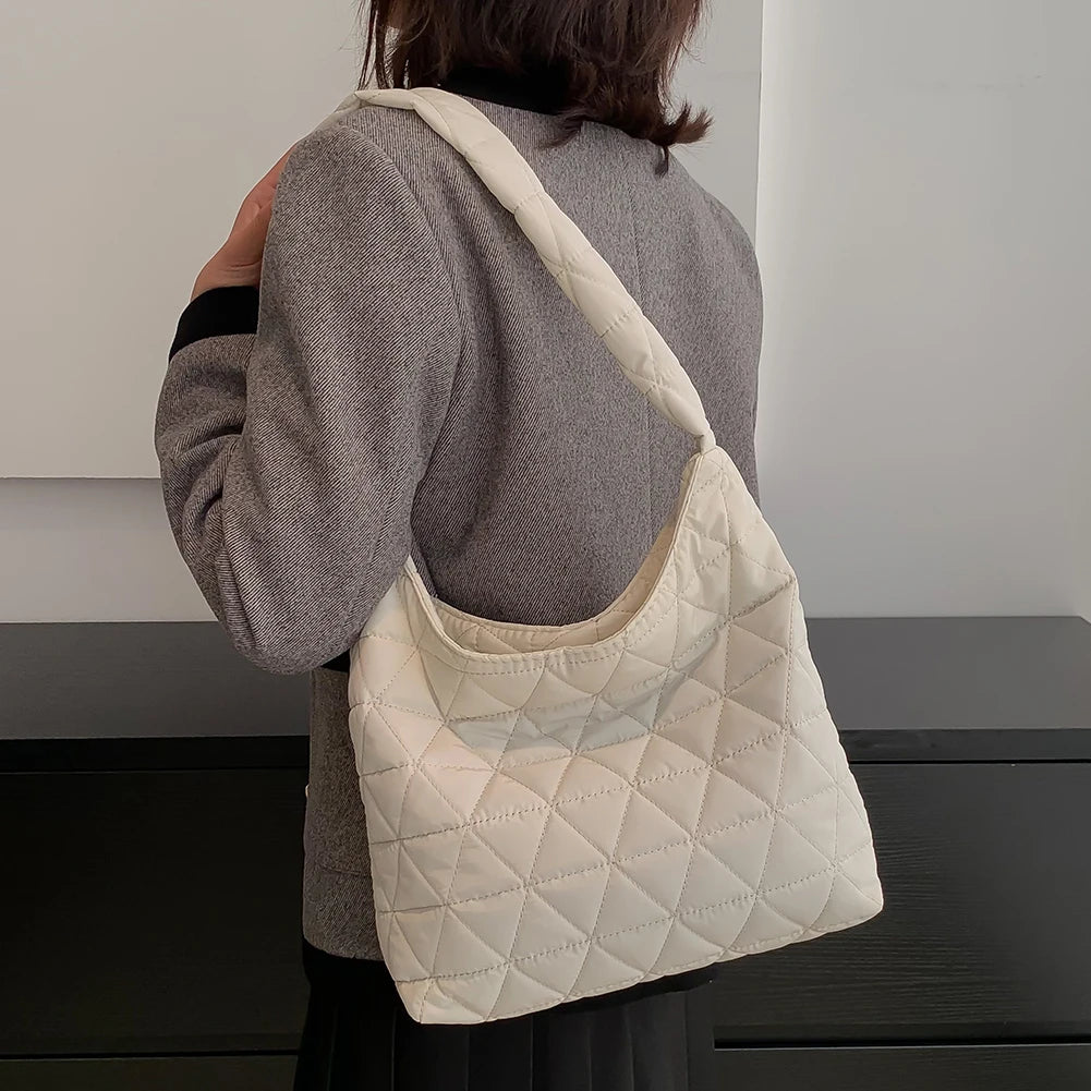 Shoulder Tote Bag Cotton Soft Women Underarm Handbag Quilted Rhombus Pattern
