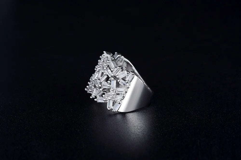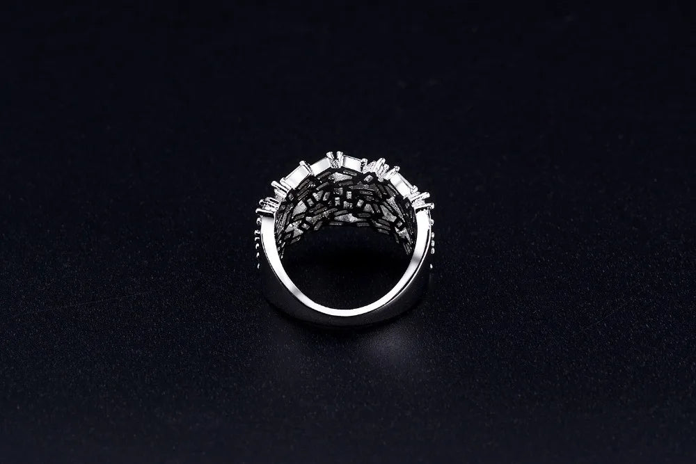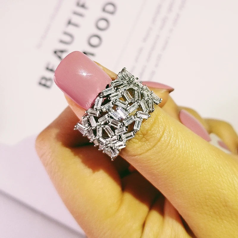 This stunning eternity band ring features a baguette shape cut design, making it perfect for weddings and engagements. Crafted in high-quality silver, this ring is a beautiful accessory for girls' fingers.