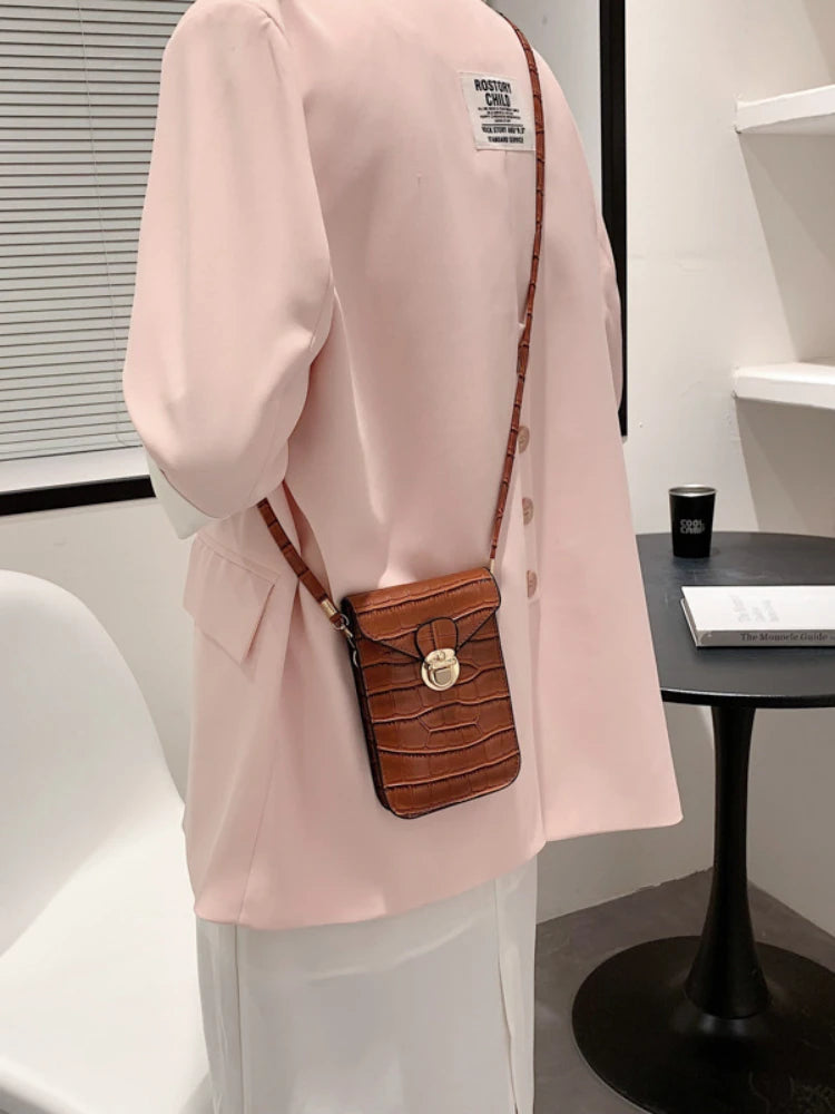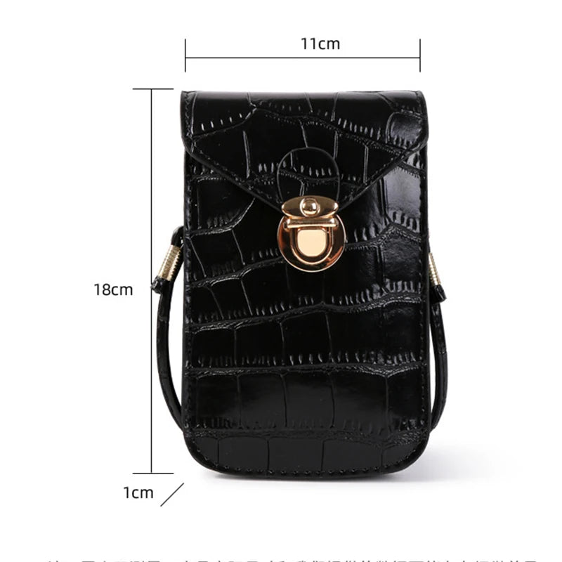 This stylish silver crocodile leather handbag features a mini design that can be used as a shoulder bag or clutch. It is perfect for carrying your mobile phone and small essentials.