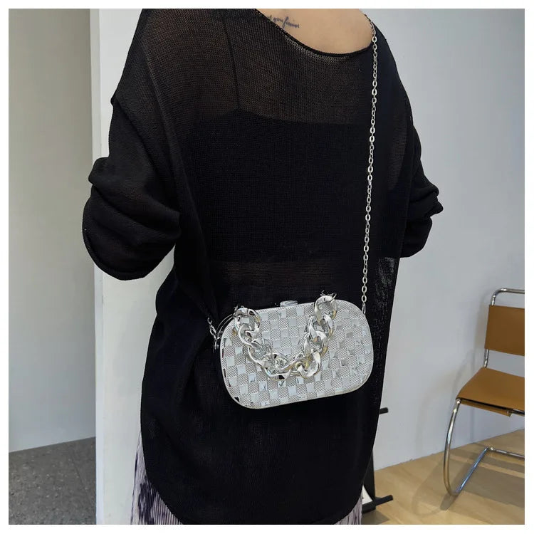 Silver PVC Box Party Clutch Bag Chain Shoulder Crossbody Mini Purse