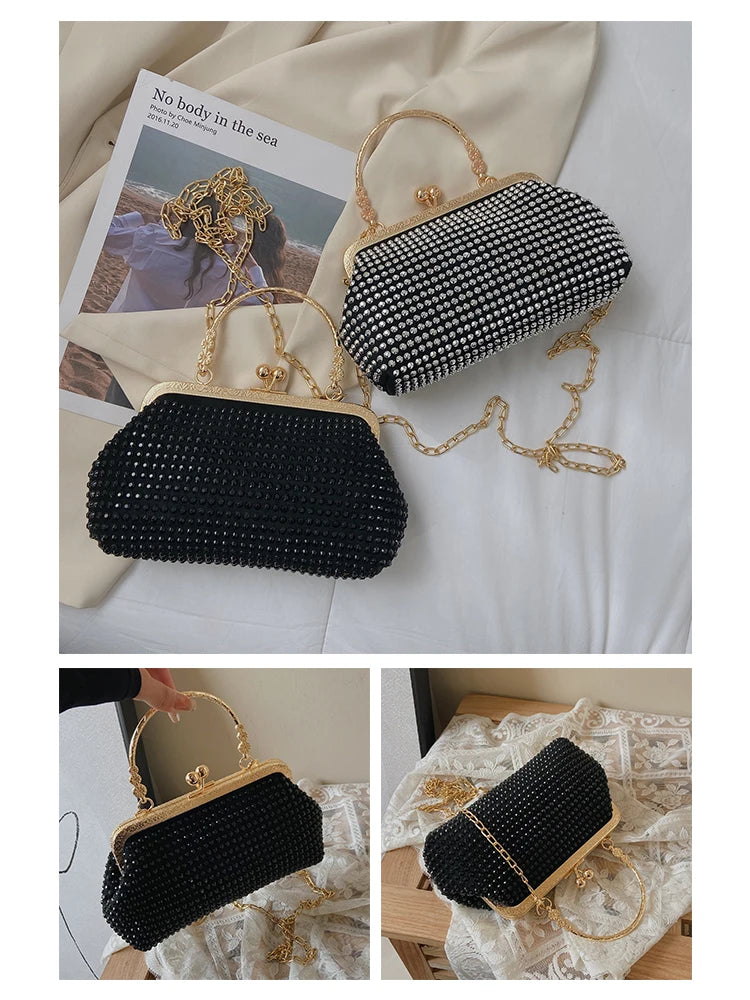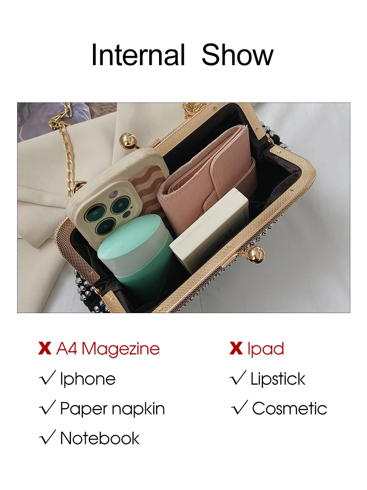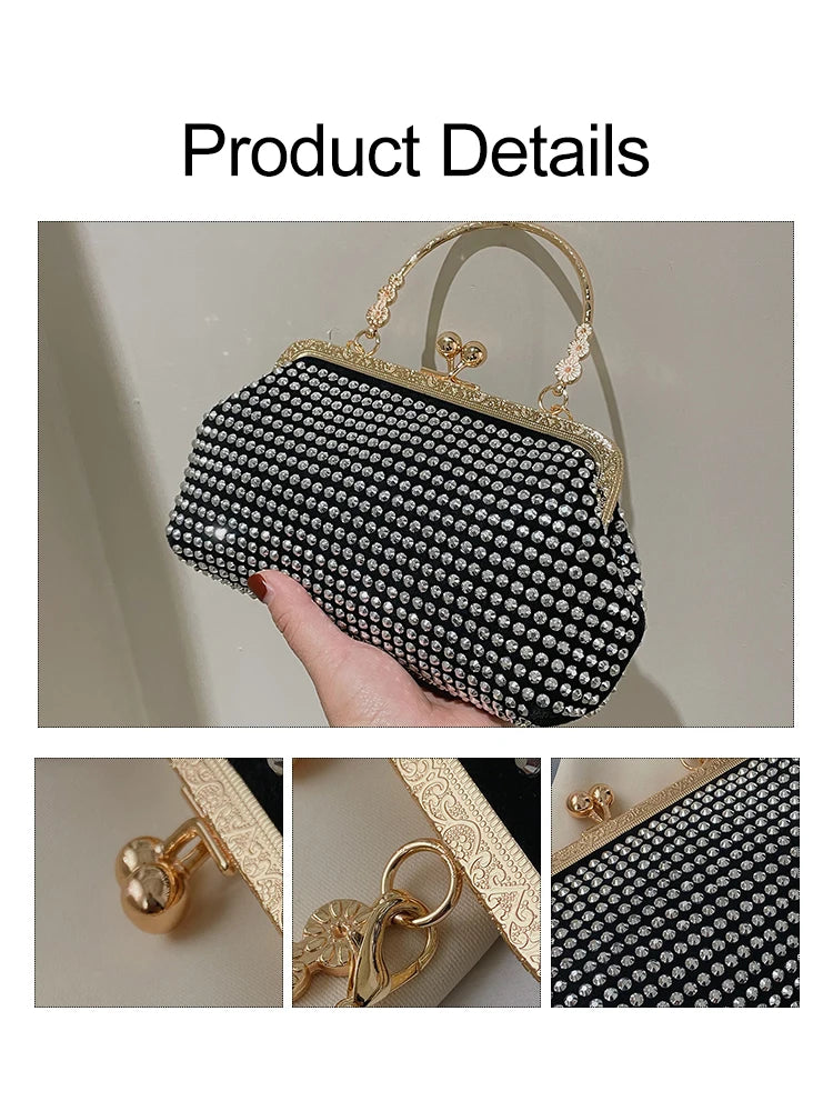 Description:This stunning evening clutch features shimmering rhinestones in a silver crystal design. Perfect for dinner parties, weddings, and special occasions.Features: Elegant rhinestones embellishment Ideal for evening events and parties Includes a detachable shoulder chain Spacious interior for essentials Versatile clutch for weddings and special occasions This product may be available...