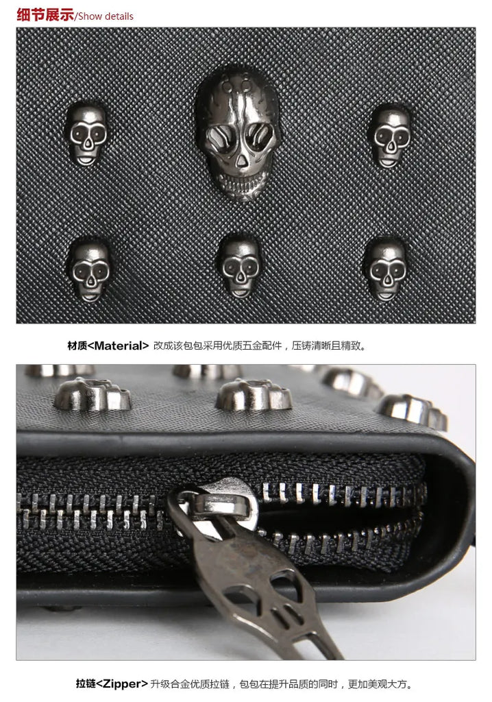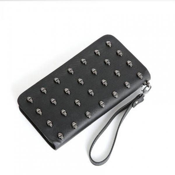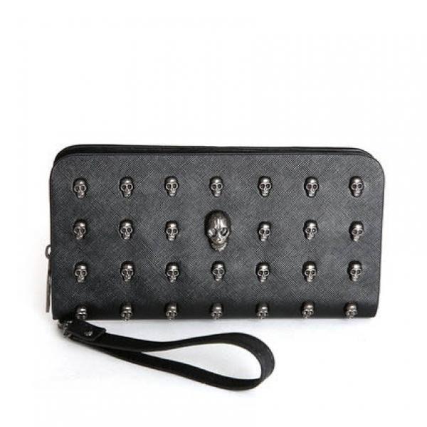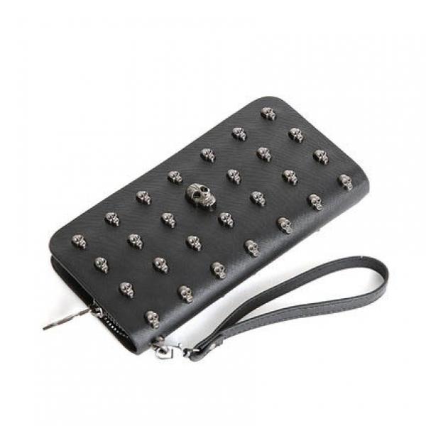 Skull Rivet Wristlet Wallet Long Zip Handbag for Women