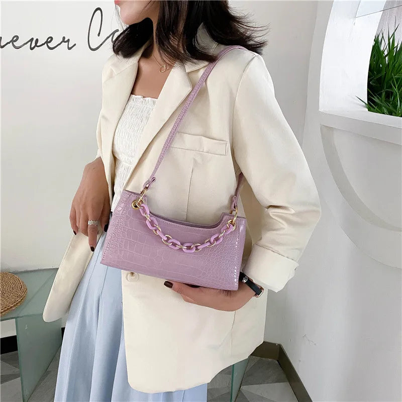 This women's handbag is made of high-quality PU leather with a stylish crocodile pattern. It's perfect for everyday use, providing ample space for your essentials while adding a touch of sophistication to your outfit.