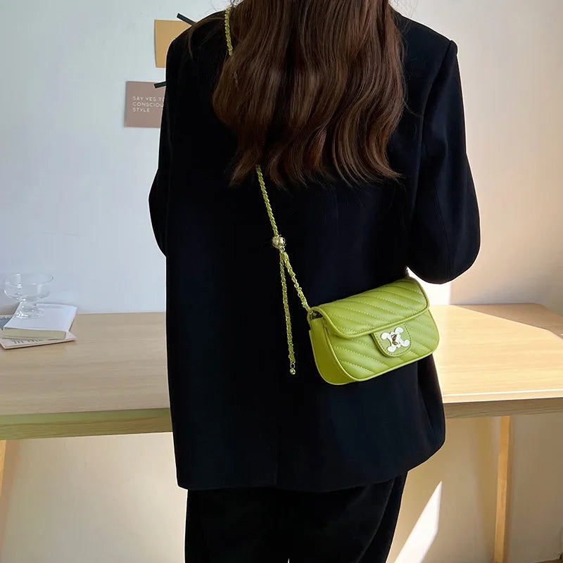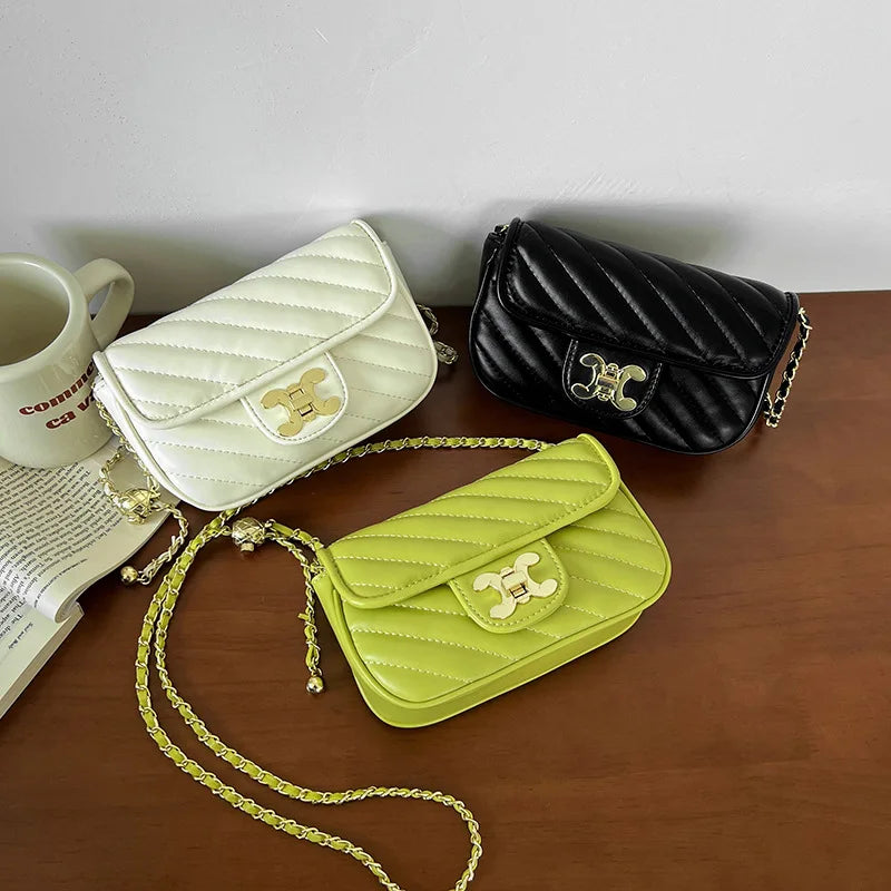This small square bag is stylish and versatile, perfect for carrying essentials. It features a rhombic chain design and a delicate fragrance.