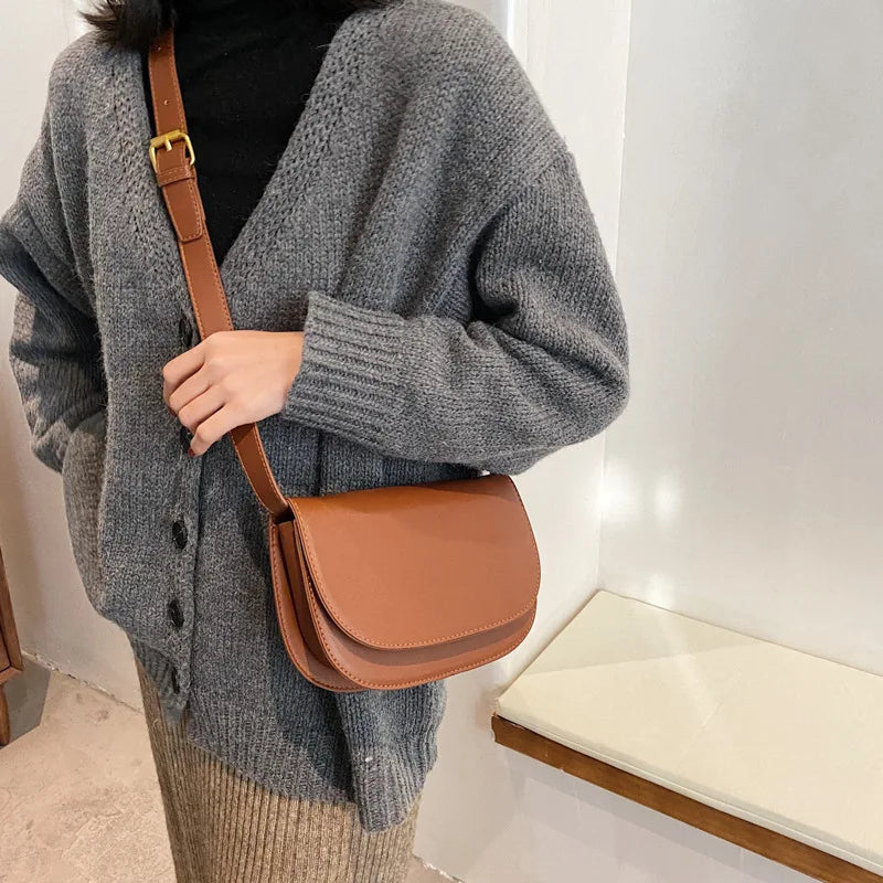 Elevate your style with this chic and versatile saddle bag. Crafted from high-quality PU leather, this crossbody bag is perfect for winter and can be worn as a shoulder or chest bag. It's a must-have for ladies who love handbags and purses.