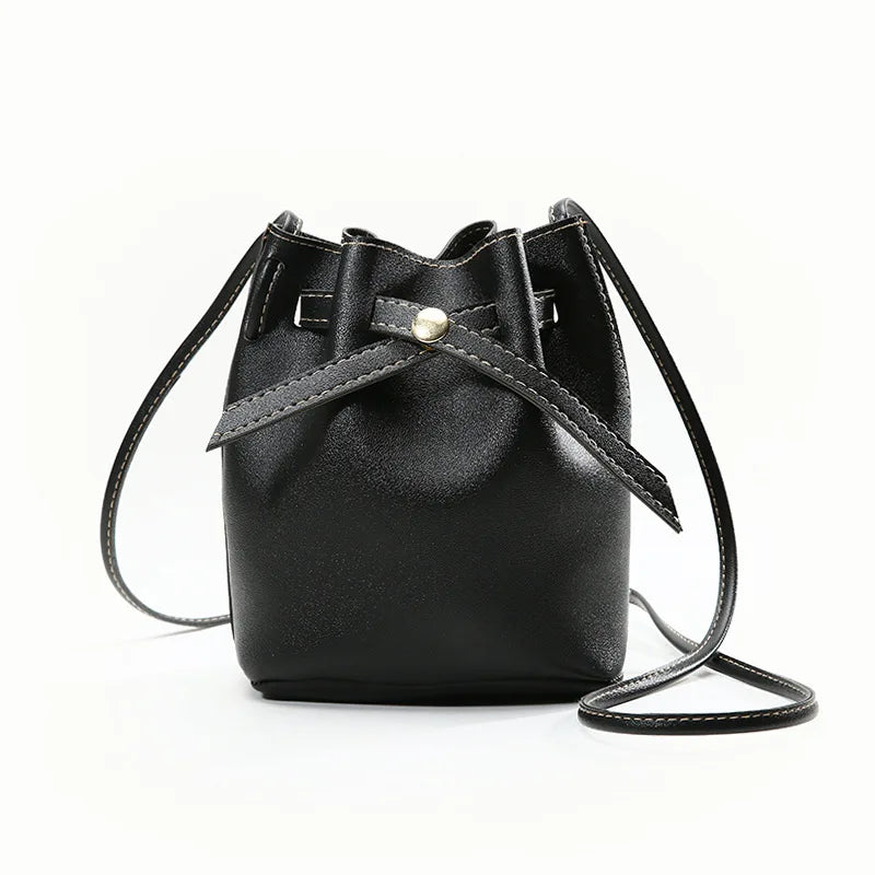 Small PU Lychee Crossbody Bucket Bag Women Casual Phone Handbag Purse
