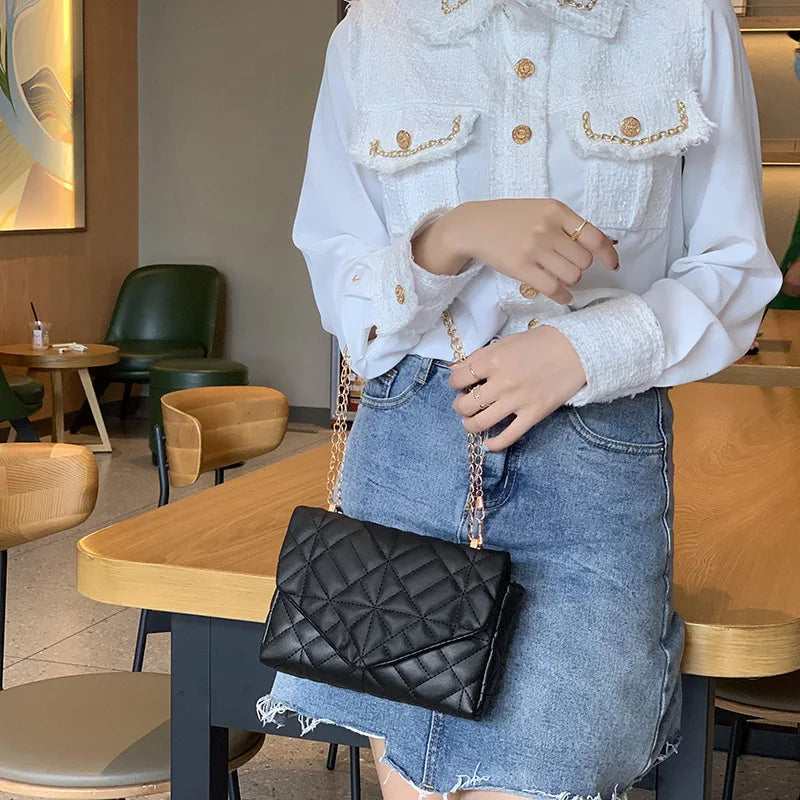 Small Square Bag Shoulder Bag Women Solid PU Leather Mini Zipper Handbags