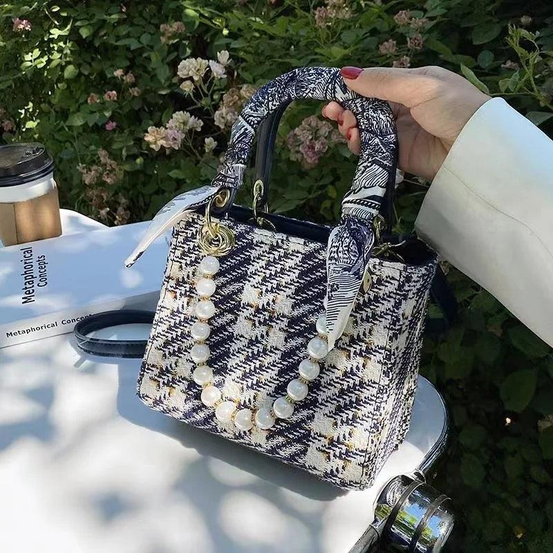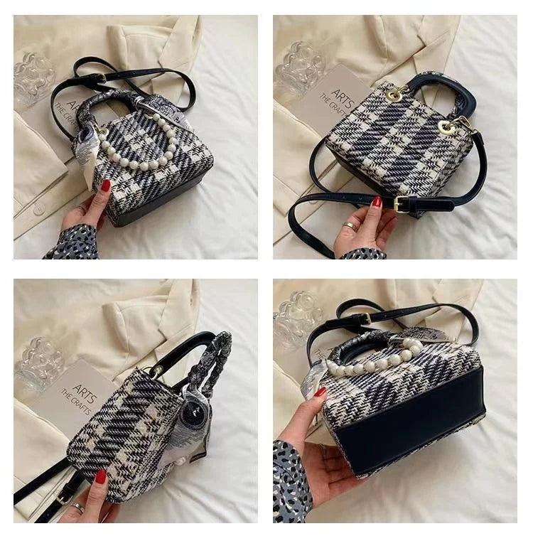 Small Square Handbags Pearl Chain Shoulder Bag