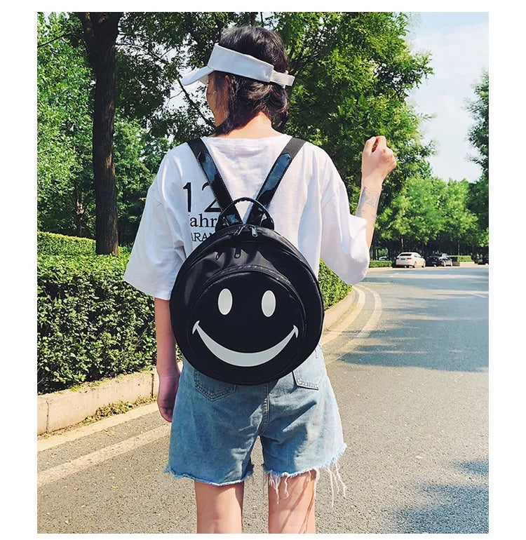 Smiling Face Backpack Women Cartoon Printed Backpacks Children Nylon Travel Bag