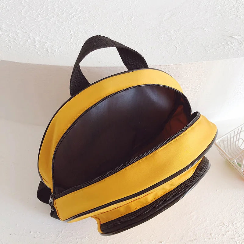 This yellow daypack is a stylish choice for students featuring a fun cartoon print. Made of durable nylon, it's perfect for school or travel.