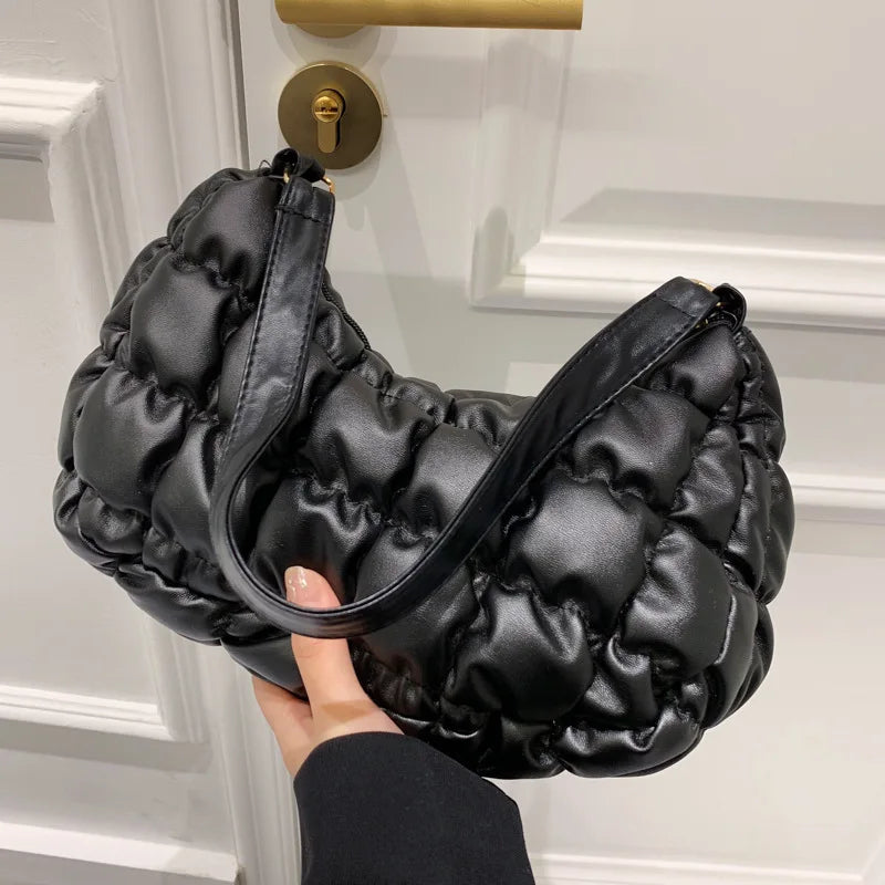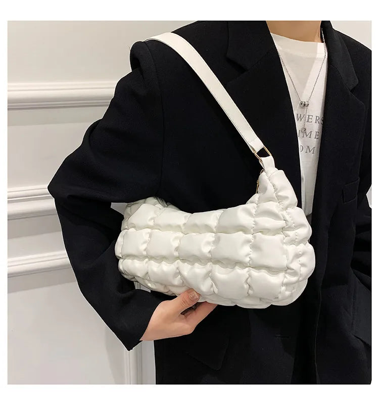 This plaid women's hobo tote bag is made of soft nylon material, perfect for shopping or everyday use. It features a padded design for added comfort and comes with a spacious interior. The underarm shoulder bag is versatile and can be used as a clutch as well.