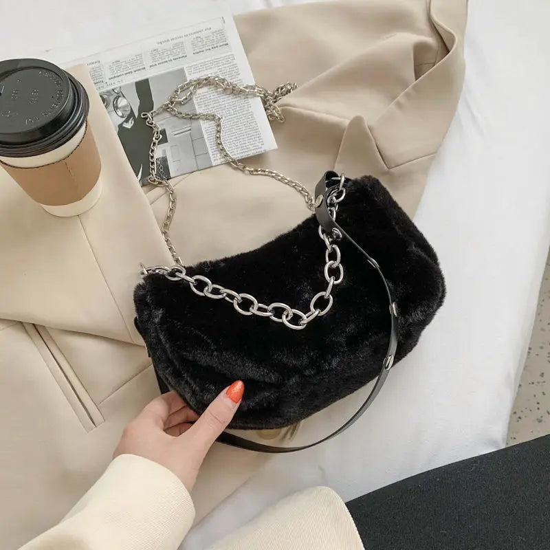 Soft Plush Women Shoulder Messenger Bag Furry Crossbody Chain Purse Handbag