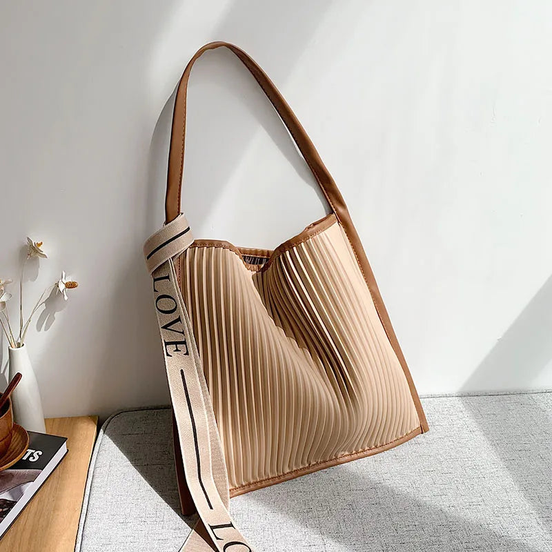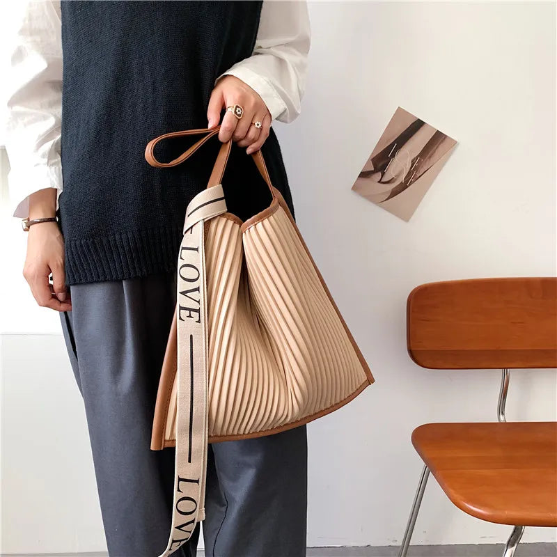 Soft Stripe PU Leather Crossbody Bag for Women Handbag Shoulder Purse