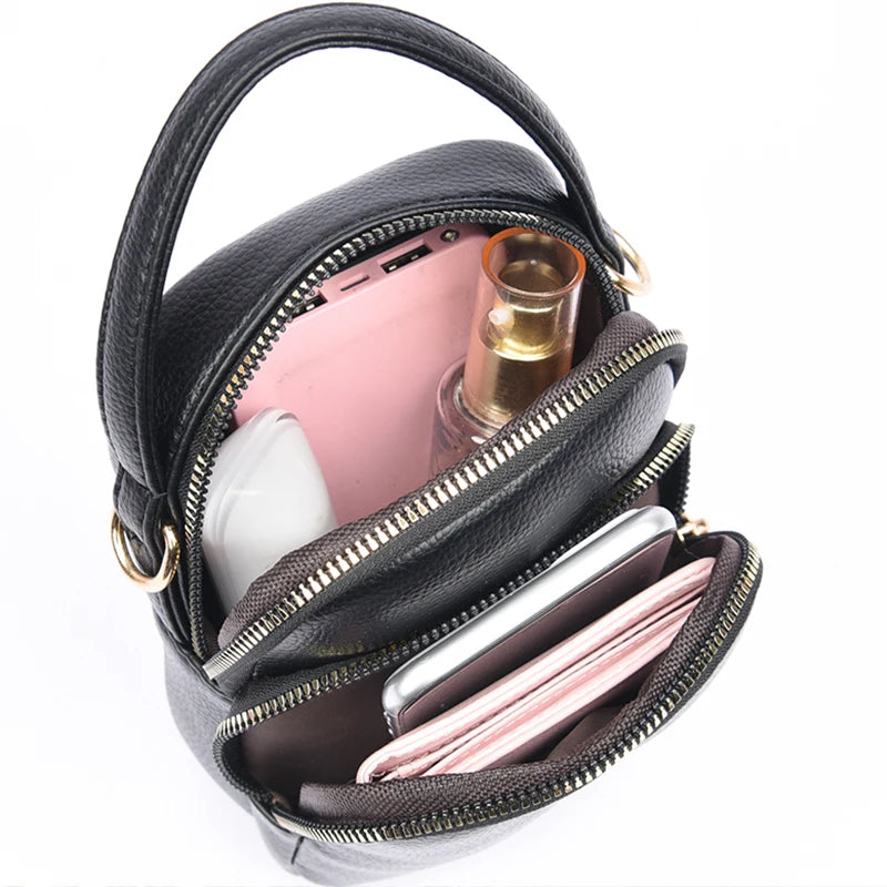 This women's shoulder bag is made of high-quality leather and features a headphone jack design. It's perfect for carrying essentials in style.