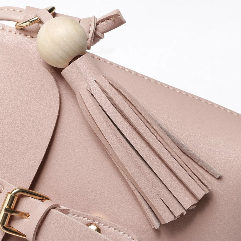 Solid Leather Tassel Shoulder Bag for Women