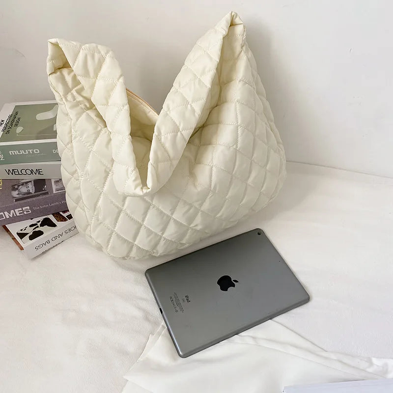 Stay stylish with this trendy solid tote bag perfect for autumn and winter. Designed with a lingge pattern, this bag offers a large capacity for all your essentials. Ideal for casual use.