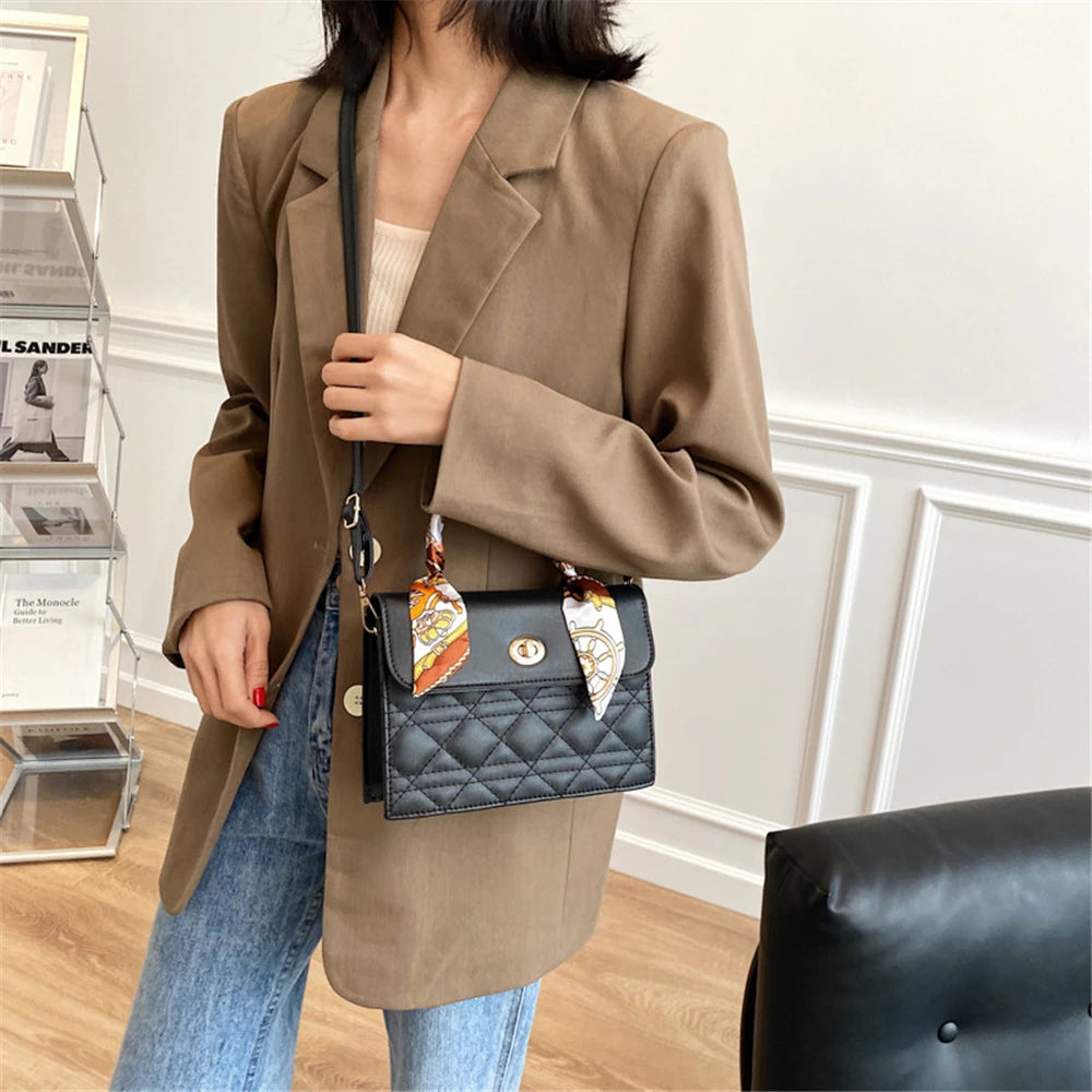 Square Flap Crossbody Bag for Women Soft PU Leather Shoulder Handbag