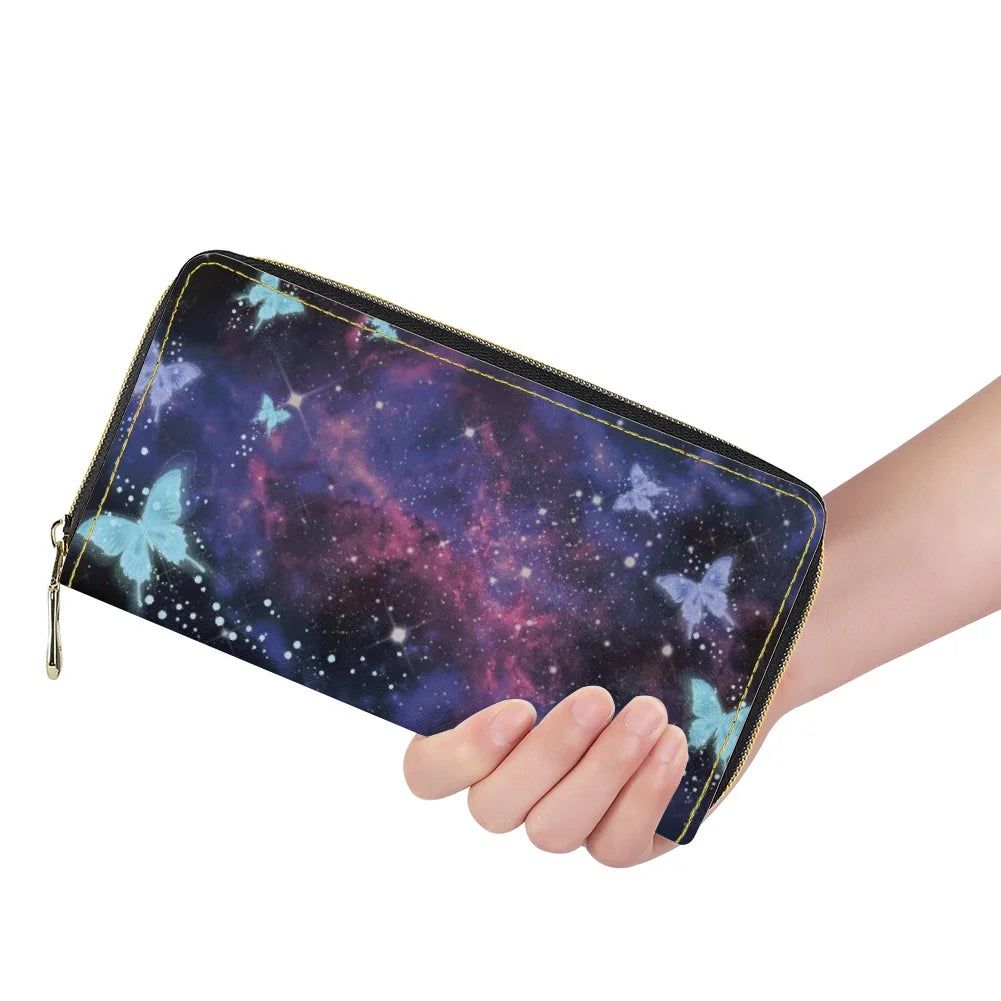 Starry Butterfly Print Long Wallet Multifunctional PU Leather Wallet