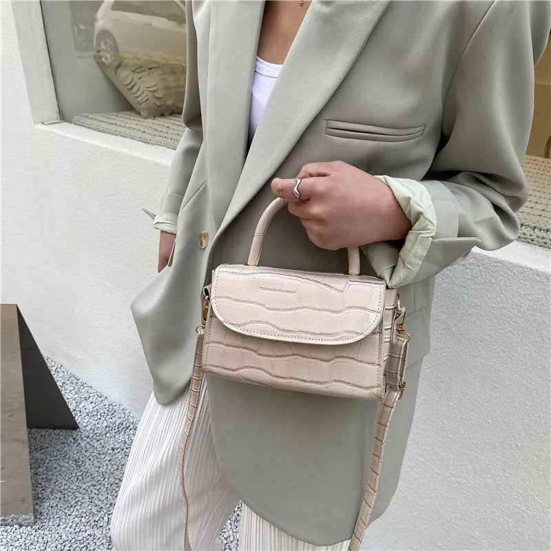 This stylish mini tote handbag is crafted from stone pattern leather, ideal for everyday use.