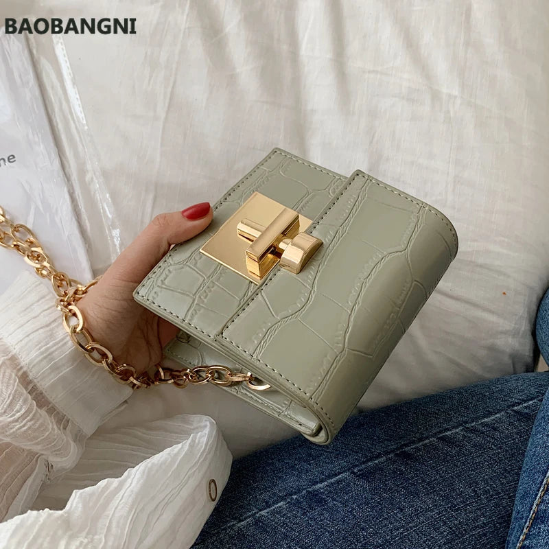 Stone Pattern Mini Crossbody Bag Lock Chain Shoulder Messenger Bag