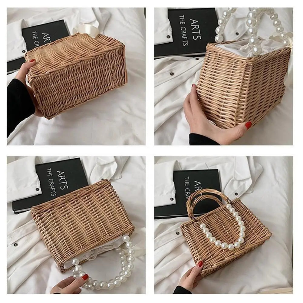 Straw Bags Beach Rattan Woven Tote Handbags Women Summer Boho Style