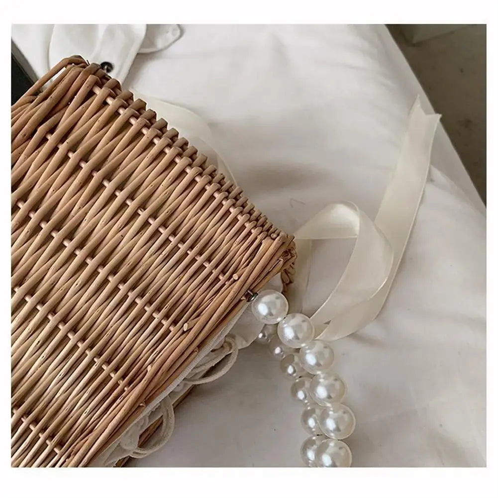 Get ready for summer with this stylish straw bag. Perfect for the beach or everyday use, this woven tote handbag is a must-have accessory. Its boho style adds a touch of elegance to your outfit.