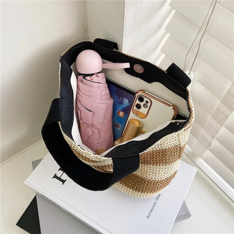 Straw Bags Women Woven Basket Beach Totes Lady Shopping Handbags