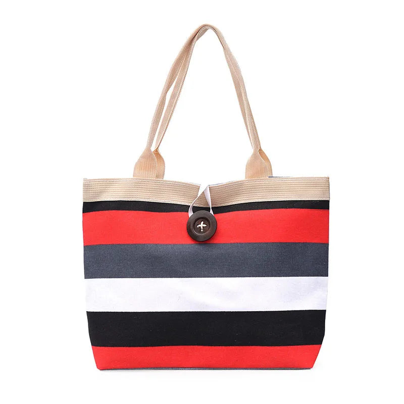 Striped Canvas Beach Tote Bag Large Summer Shoulder Handbag