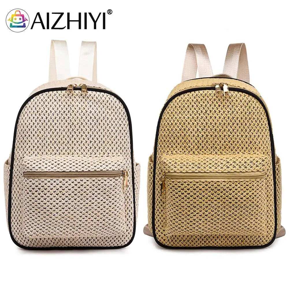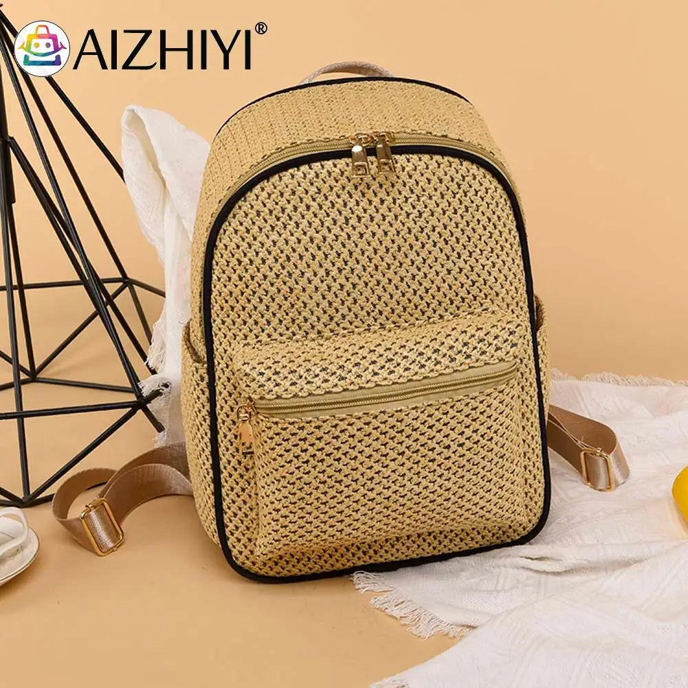 Summer Straw Backpack Beach Woven School Bag
