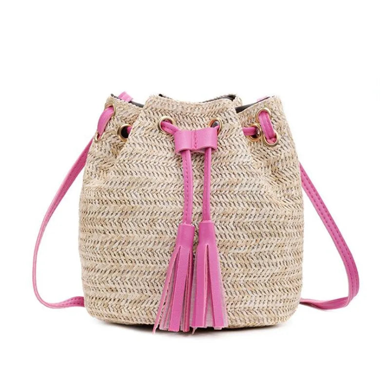 Stay stylish and organized with this summer tassel bucket bag. It features a drawstring closure, tassel accents, and a portable slung design. Perfect for everyday use.