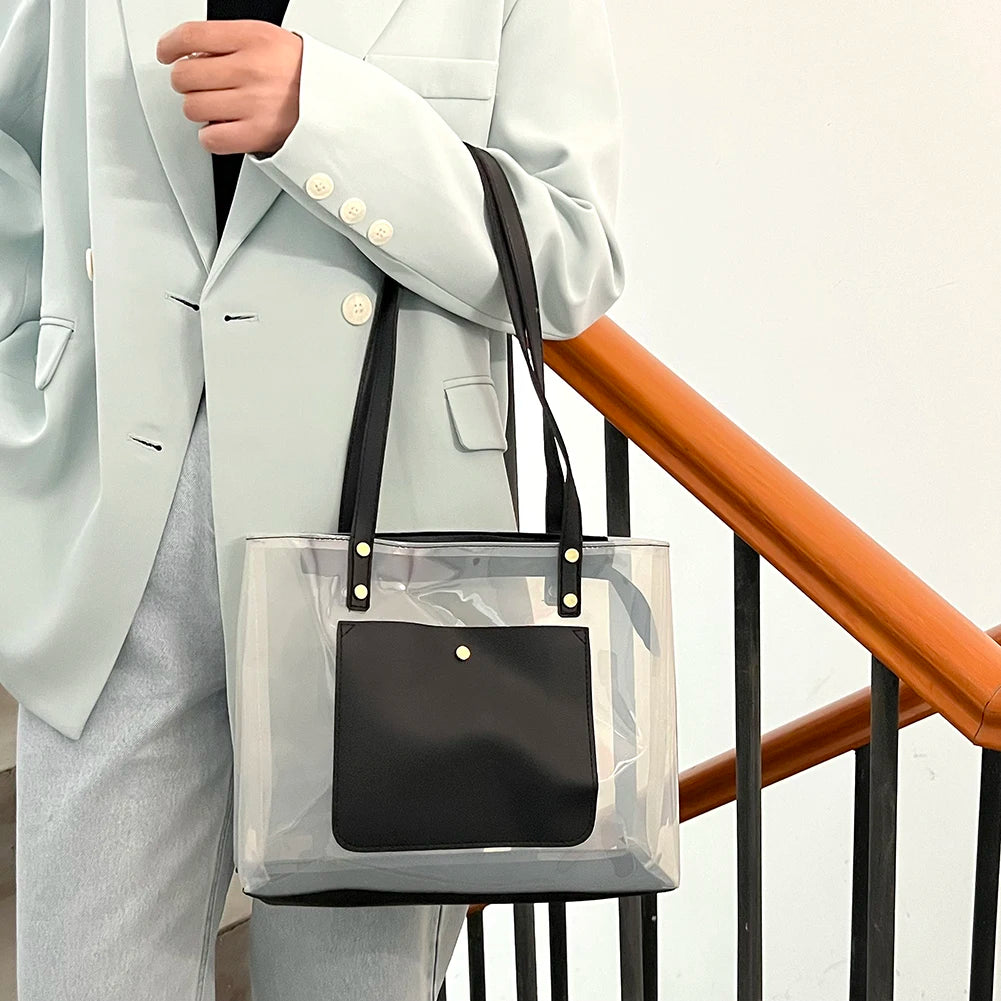 Summer Transparent Shoulder Bag Clear Shopping Beach Handbag Large Capacity
