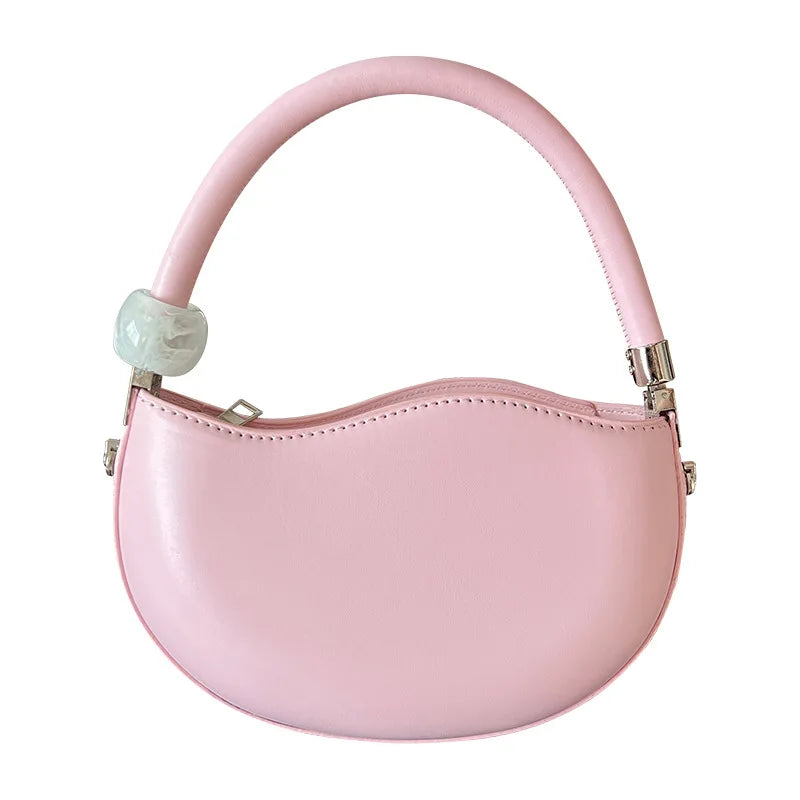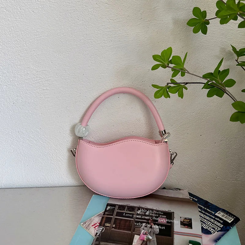 This small solid handbag in gentle pink is perfect for any occasion. The versatile design makes it a great accessory for stylish women.
