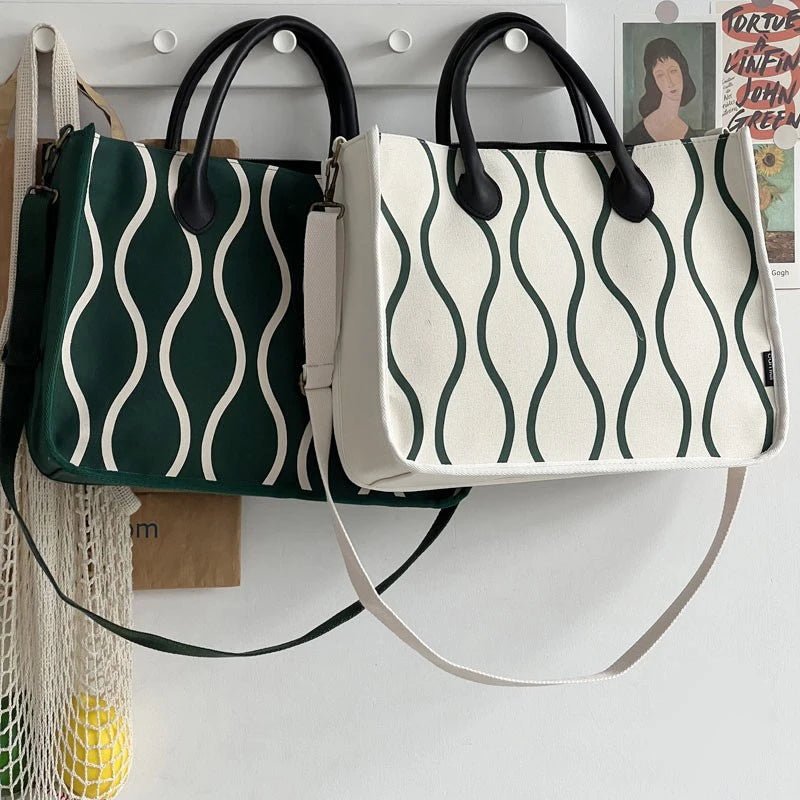 This canvas bag is perfect for college students. It is portable and features a stylish square design with stripes. Ideal for carrying books, laptops, and other essentials.