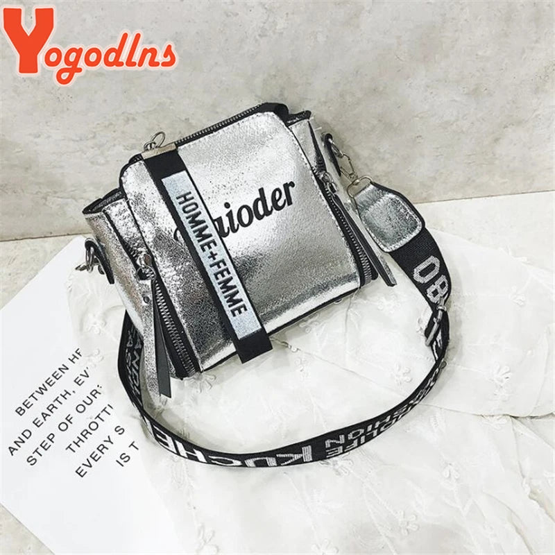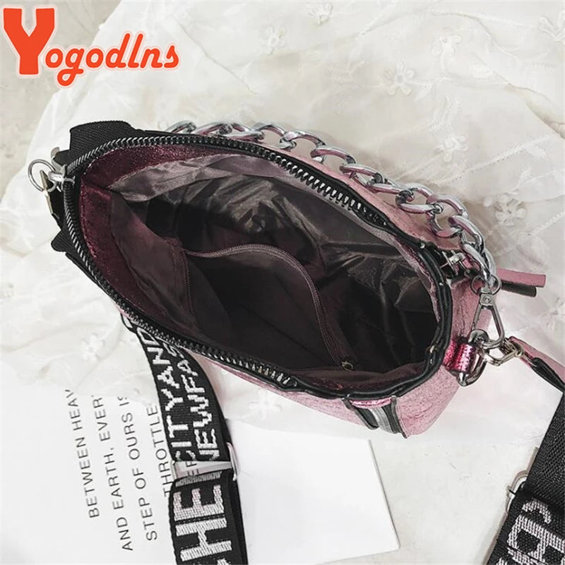 Tide Ladies Letter Handbags Wide Strap Chains Shoulder Bag Women Crossbody Bags