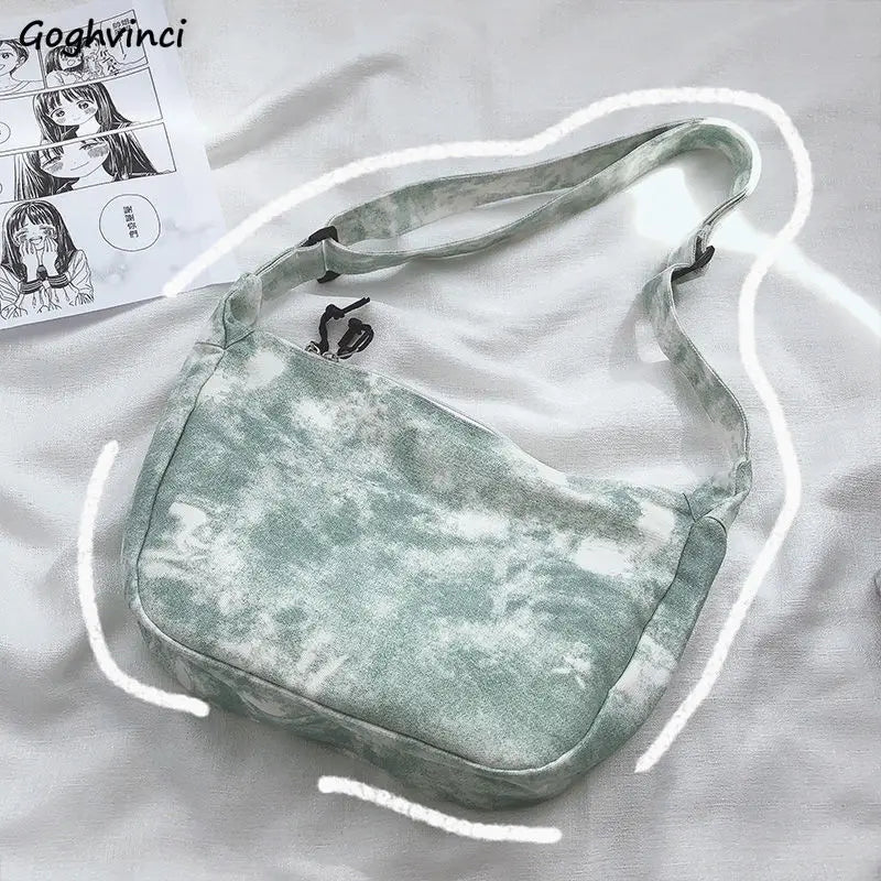 Stay stylish with this tie-dye canvas crossbody bag featuring a casual design, zipper closure, and comfortable shoulder strap. Perfect for students, travel, or a day out in Harajuku.