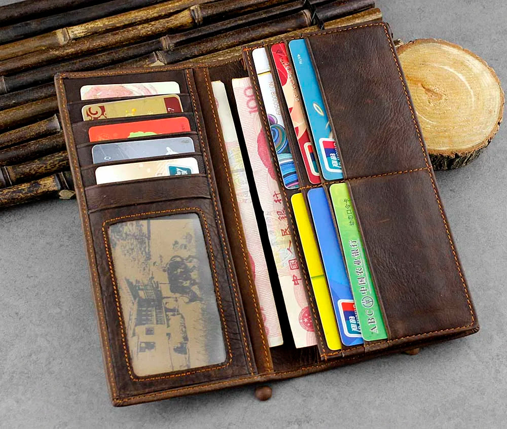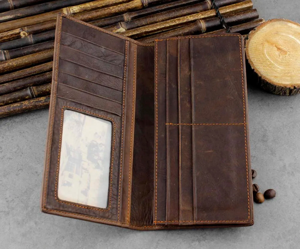 Experience luxury with this long crocodile patterned leather wallet for men. It boasts a classic design and ample space for your cards, cash, and more.