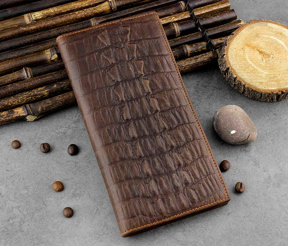 - High-quality long crocodile patterned leather wallet