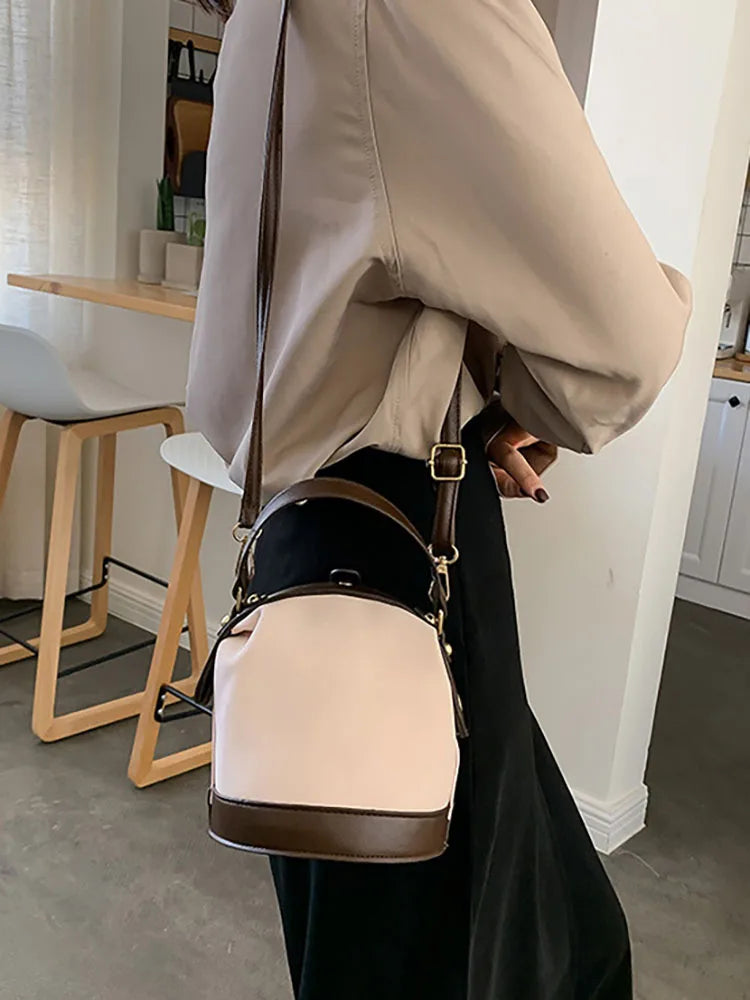 The Contrast Bucket Women's Bag is a stylish and practical accessory for everyday use. Made of high-quality PU leather, this bag combines a top handle and a detachable shoulder strap for versatile carrying options.