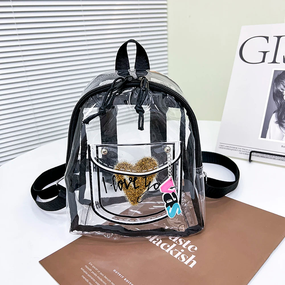 Transparent Backpack Waterproof Letter Love PVC Women Students Schoolbag